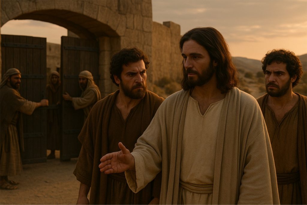 La escena es breve, pero toca fibras profundas de la vida diaria. Los discípulos reaccionan con el corazón herido ante el rechazo, como cualquiera de nosotros cuando nos cierran la puerta. Pero Jesús no responde con enojo ni con deseo de venganza; simplemente sigue caminando, porque su mirada está puesta en Jerusalén, en la misión que le esperaba.