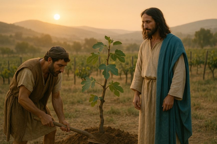La parábola tiene dos protagonistas: el dueño que busca fruto y el viñador que intercede. El dueño representa la justicia divina; el viñador, la misericordia que pide un año más. En esa súplica del viñador hay algo profundamente tierno: no se resigna. Propone trabajar, abonar, cuidar.