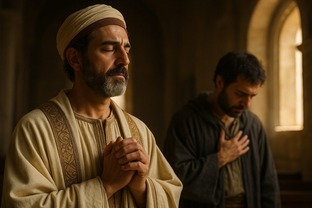 «Dos hombres subieron al templo a orar. Uno era fariseo; el otro, publicano. El fariseo, erguido, oraba así en su interior: